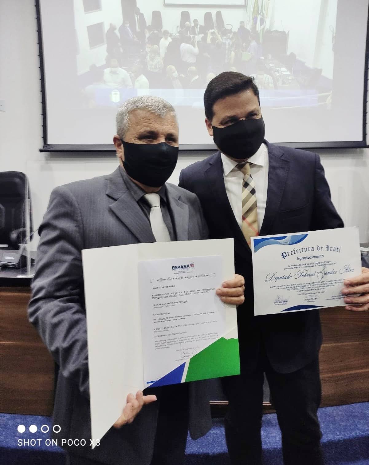 Durante a cerimônia de entrega do título de Cidadão Honorário de Irati para o secretário de Infraestrutura e Logística do Paraná, Sandro Alex, foi assinada a autorização da pavimentação asfáltica no Condomínio Industrial da Vila São João, no valor de R$ 2 milhões e 616 mil.