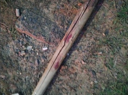 Bastão usado para atingir a vítima foi apreendida pela PM