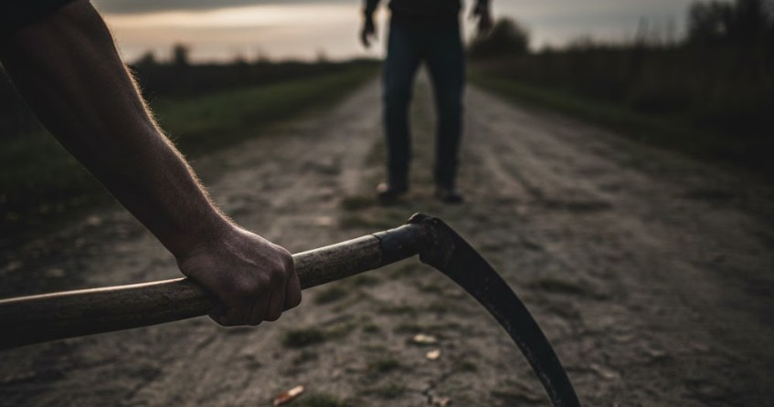 Quando os policiais chegaram, encontraram o autor segurando uma foice e bastante alterado.