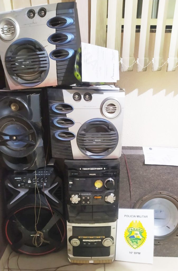 Som apreendido: Já na tarde de domingo, a PM constatou uma situação de perturbação de sossego na Linha Erval Bonfim, no interior de Prudentópolis. Uma mulher, de 54 anos, relatou que seu vizinho costuma ligar o som alto. Ela também informou que na casa moram três pessoas com problemas de saúde. Os policiais estiveram no local e constataram que o som estava em volume elevado. Por esse motivo, a PM apreendeu o aparelho de som e conduziu o homem até a sede da 4ª Cia. Lá, ele assinou o Termo Circunstanciado.