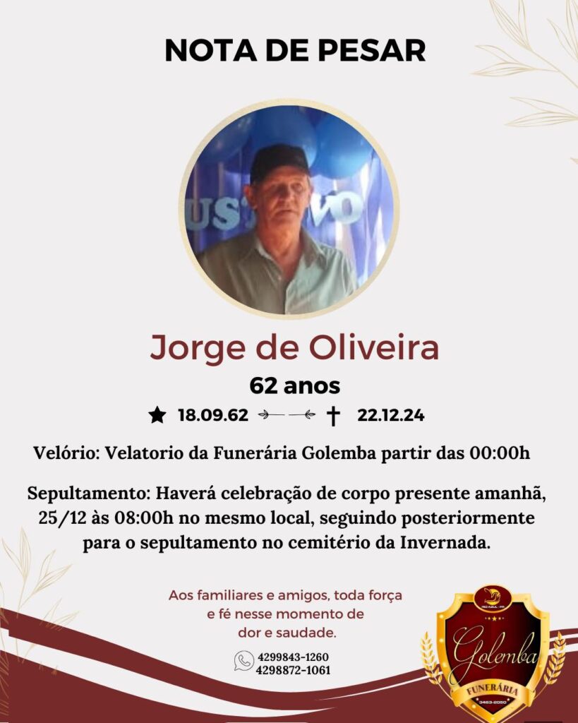 A Polícia Militar foi acionada e isolou o local até a chegada do IML e da Polícia Científica, que realizou o trabalho de perícia, que vai apontar as causas da morte da vítima. O corpo de Jorge foi encaminhado ao IML de União da Vitória. Ele será translado e velado no velatório da Funerária Golemba, em Rio Azul, a partir da 0h de quarta-feira. Haverá celebração de corpo presente, a partir das 8h, no mesmo local, seguindo logo depois para o sepultamento no Cemitério da localidade de Invernada, no interior de Rio Azul.
