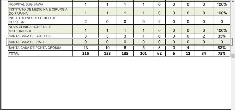 Santa Casa de Irati não recebeu nenhum transplante em 2022, segundo dados da Central de Transplantes do Paraná. Foto: Reprodução