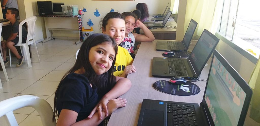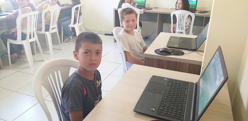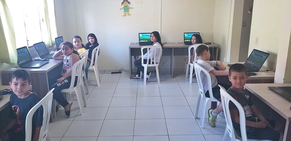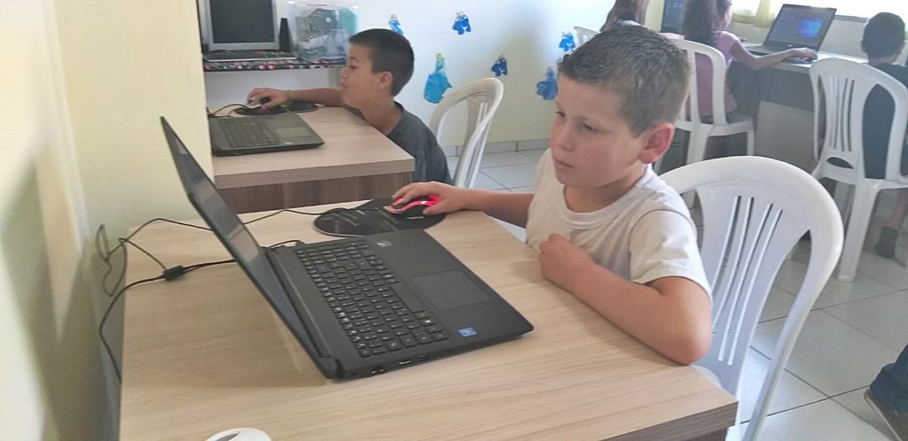 Alunos exensionistas do IFPR atuam no projeto junto às crianças. Os computadores foram adquiridos no final de 2018, depois que a Cidade da Criança recebeu recursos para isto. Antes, a comunidade já havia doado computadores para que o projeto tivesse início. “Eram computadores antigos, desatualizados e “Frankenstein”, ou seja, montados com várias peças de outros computadores para eles funcionarem. Não havia uma padronização nos computadores para que todos estivessem utilizando o mesmo software. Eles usavam o editor de texto, mas às vezes eram de versões diferentes”, comentou.