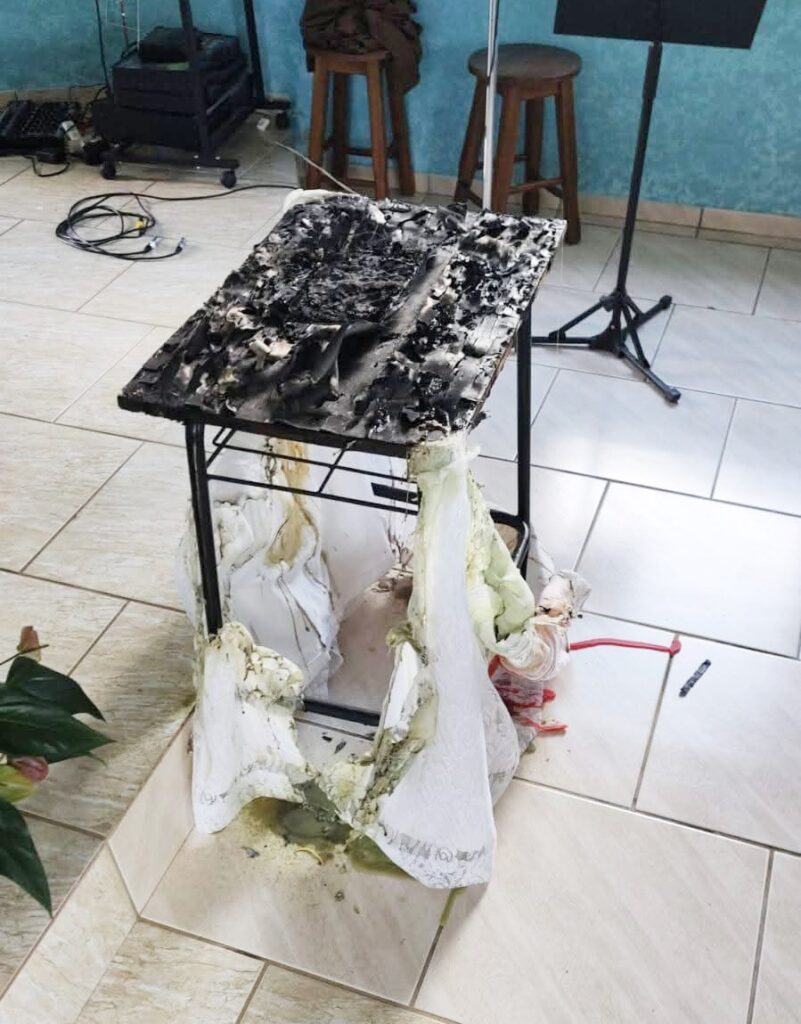 Porta que dá acesso à igreja teve os vidros quebrados e algumas velas foram queimadas