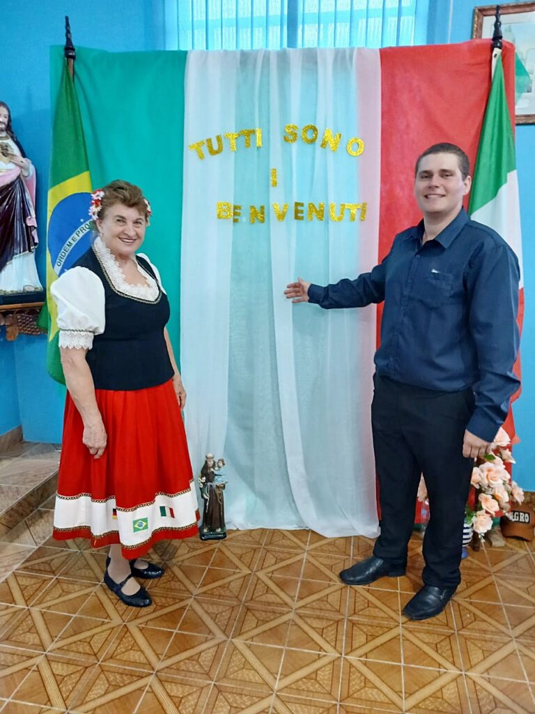 História dos imigrantes italianos – A história conta que grande parte destes imigrantes saiu da Itália para fugir de uma crise econômica ainda no século XIX, segundo o padre. “Eles já vieram de uma situação muito difícil na Itália, onde no século XIX houve uma grande crise econômica. Por isso, os italianos imigraram para outros países em busca de melhores condições e colocaram em risco a vida, e imagino que muitos a perderam na travessia da Itália para o Brasil. Os imigrantes que chegaram se encontram em nosso país, em diversos estados e cidades, como Rio Grande do Sul, Santa Catarina, Paraná e São Paulo. Então, a imigração e a presença dos italianos são muito grandes. Somos brasileiros, mas conservamos as nossas origens italianas”, comentou.