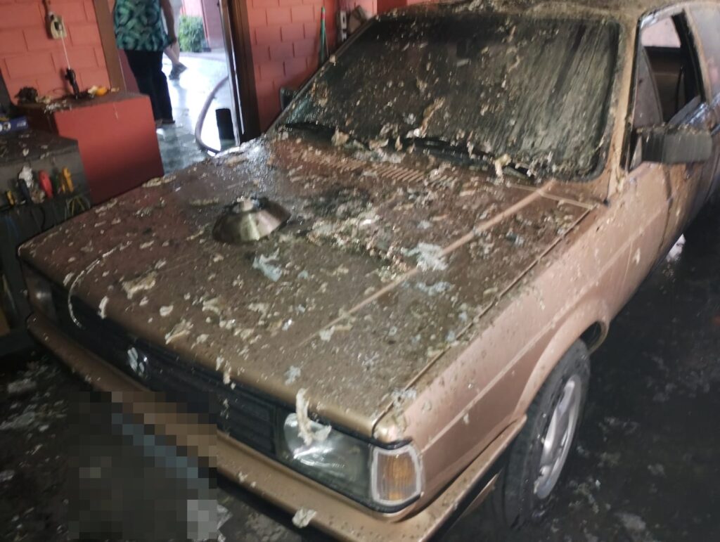 Ainda foi necessário quebrar uma porta de vidro da frente para retirar um veículo que estava nesse local. Os bombeiros realizaram um rescaldo da área e orientaram os proprietários da casa.