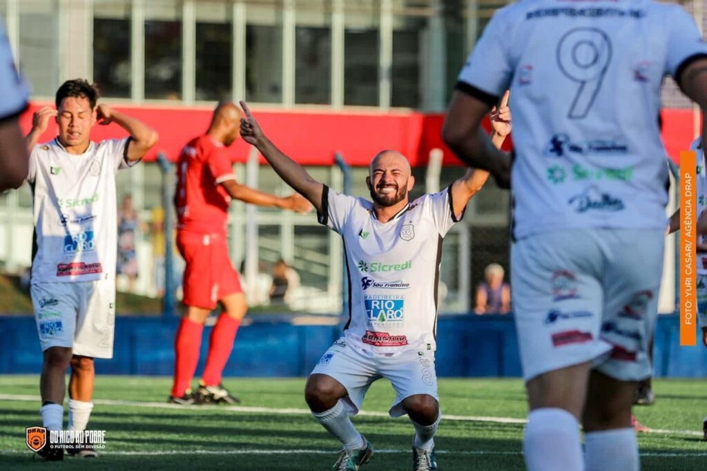 Toninho comemorando gol da vitória contra Pilarzinho na 1ª rodada da Taça Paraná de Futebol. Foto: Yuri Casari/Agência Drap