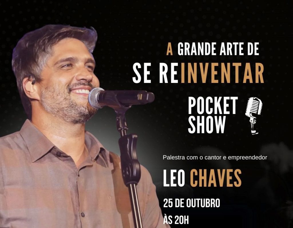 O cantor Léo Chaves estará em Irati no dia 25 de outubro (quarta-feira) para realizar uma palestra com o tema “A Grande Arte de Se Reinventar”. O evento terá um pocket-show do cantor e acontece no Centro de Eventos Italiano, a partir das 20 h. A palestra está sendo organizada pela Associação Comercial e Empresarial de Irati (ACIAI).