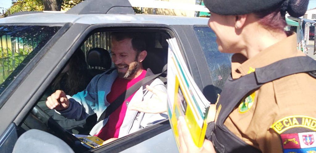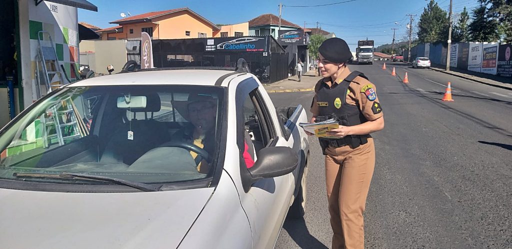 Orientações – Durante a blitz, motoristas foram orientados sobre as normas de segurança, como a importância do uso do cinto e de evitar a utilização do celular enquanto dirige, que é uma das maiores causas de acidentes de trânsito. Blanski salienta que, ao verificar que o motorista está utilizando o celular ao dirigir, o agente de trânsito ou o policial militar poderão fazer a abordagem e aplicar multa. “Podendo fazer a abordagem, o policial ou agente de trânsito da Iratran e da Guarda Municipal conversa com o condutor na tentativa de uma orientação. Se o policial constatar que o motorista está utilizando o aparelho celular, ele vai fazer a notificação”, frisou.