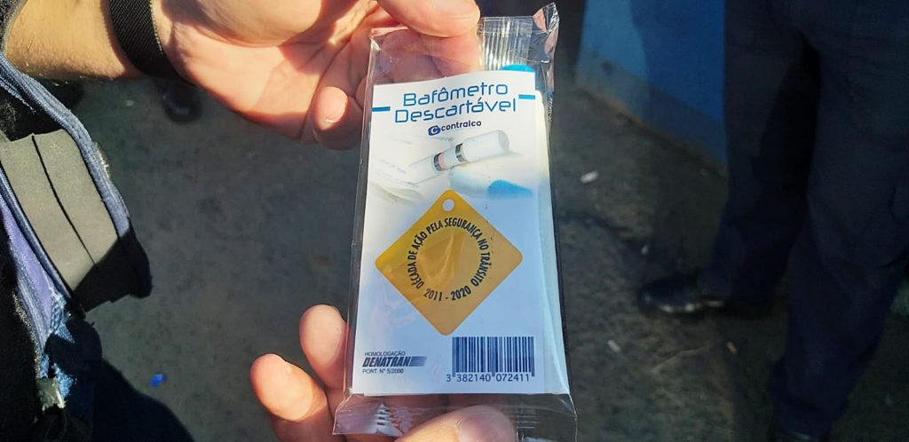 Além disso, alguns motoristas também foram submetidos ao teste de embriaguez. Para isto, foram utilizados bafômetros descartáveis. Em vídeo publicado nas redes sociais da Najuá, o 1º Sargento Leandro Blanski, da Polícia Militar, explica à motorista Ângela como seria feito o teste. “Ele funciona como se fosse um balão, você vai soprar aqui, ele vai encher e nós vamos tirar o bico para ver o resultado. Deu negativo, mas caso ele tivesse ficado na coloração azul, teria indicado que você ingeriu bebida alcoólica”, comentou.