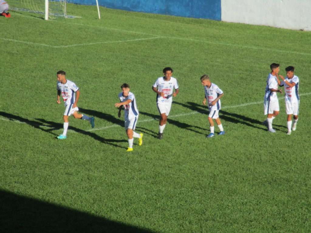 Jogadores do Iraty comemorando gol de empate do Azulão contra o Prudentópolis. Equipe sofreu gol no fim do jogo e perdeu em casa por 2 a 1, na estreia do Paranaense Sub-20. Foto: Portal Clique
