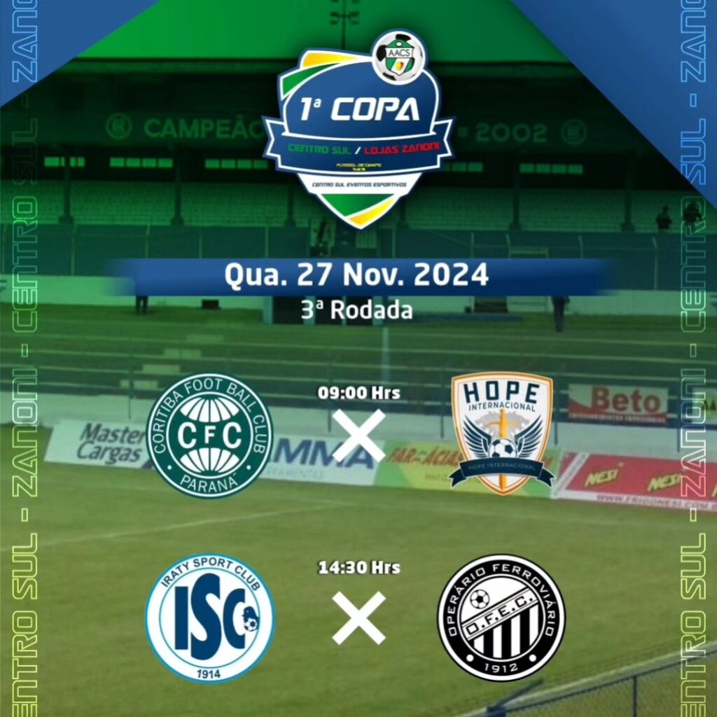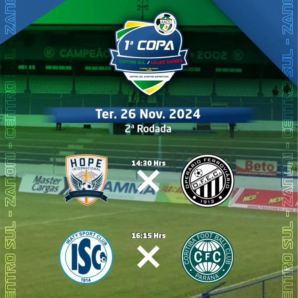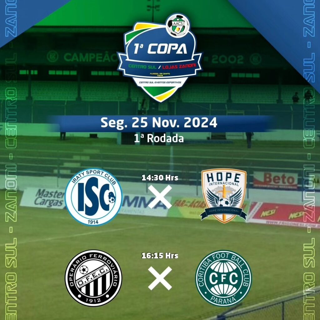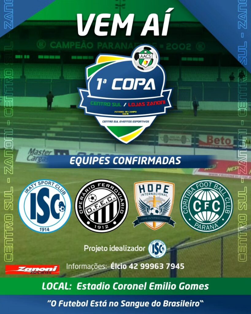 O Iraty Sport Club em parceria com a empresa Centro Sul Eventos Esportivos promove na próxima semana a 1ª Copa Centro Sul/Lojas Zanoni de Futebol Sub-16, no estádio Coronel Emílio Gomes, em Irati. Será realizado um quadrangular com três rodadas. Na segunda-feira, dia 25, o Iraty enfrenta o Hope Internacional, às 14h30. Operário e Coritiba jogam às 16h15.