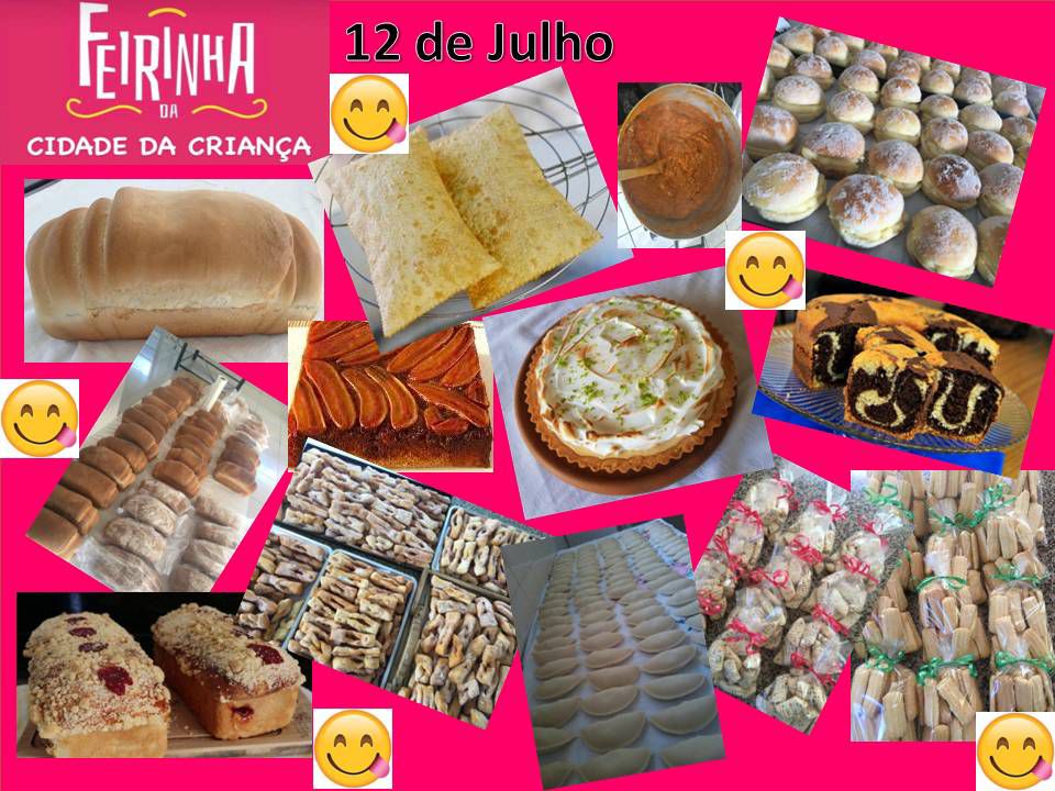 Também haverá venda de pães, bolos, pastéis, sonho assado de creme, pirogue, bolachas, chineques, calça virada, entre outros produtos alimentícios.
