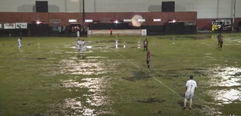 Jogo foi suspenso antes do início do 2º tempo com o placar de 0 a 0. Na primeira etapa, já havia ocorrido uma paralisação por conta da chuva forte com queda de granizo/Texto de Rodrigo Zub