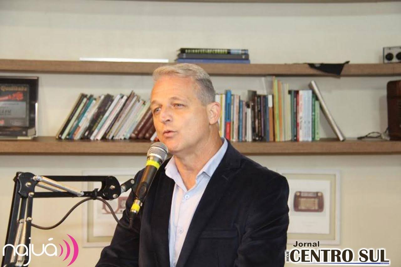| Junior Benato durante debate promovido pela Rádio Najuá e jornal Hoje Centro-Sul. Foto: Ciro Ivatiuk/Hoje Centro-Sul |