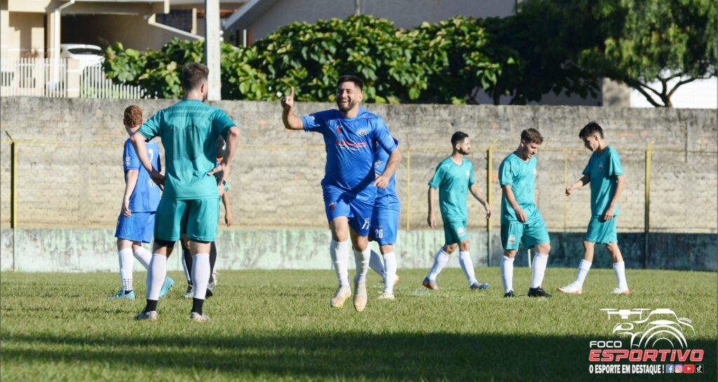 João Victor (jogador do Pena Sports/Wisa Informática) comemorando gol marcado em jogo da semifinal da Copa Folha de Irati contra Fernandes Pinheiro. Foto: Foco Esportivo