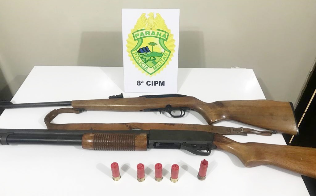 Uma mulher que reside em Rio Azul entregou duas espingardas que pertenciam ao seu filho para a Polícia Militar. A própria moradora foi quem acionou os policiais na segunda-feira. Na ocasião, ela disse que o filho estava realizando disparos de arma de fogo.