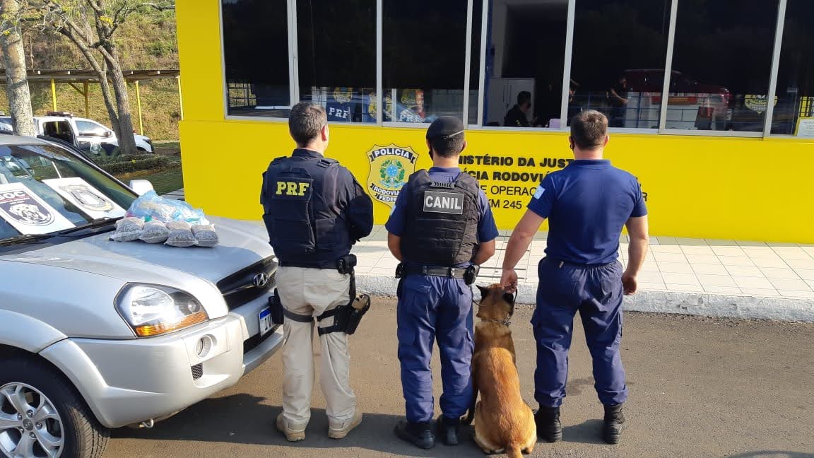 Dois ocupantes do veículo foram presos pela PRF. Operação contou com o auxílio do Canil da Guarda Municipal