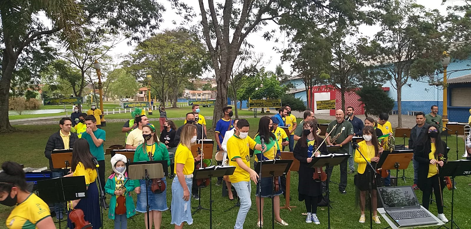 Faixas em defesa do voto impresso e da democracia e contra o Supremo Tribunal Federal (STF)foram colocadas no local. Banda Ebenézer, da Igreja Evangélica Assembleia de Deus, fez algumas apresentações musicais e executou o Hino Nacional Brasileiro/Paulo Henrique Sava