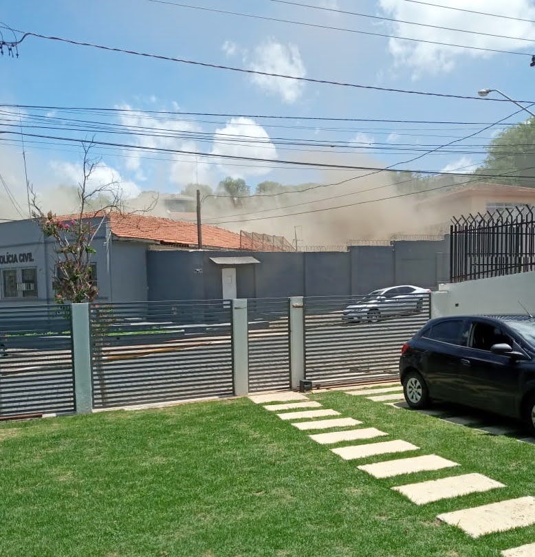 | Moradores que residem ao lado da Delegacia registraram fotos e vídeos do incêndio. Foto: WhatsApp/Divulgação |