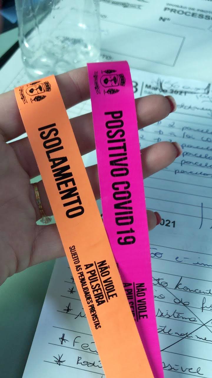 As pessoas suspeitas ou contaminadas por Covid-19 recebem a pulseirinha assim que forem testadas ou buscarem por diagnóstico. No caso de pessoas que fazem exames em laboratórios particulares, o responsável pelo estabelecimento é quem entra em contato a Vigilância Epidemiológica. “Os laboratórios aqui do nosso município, quando fazem os testes, eles imediatamente comunicam a pessoa responsável pela Epidemiologia, nossa enfermeira, e ela imediatamente entra em contato com a pessoas para que ela vá até a Epidemiologia e coloque a pulseira”, explica.