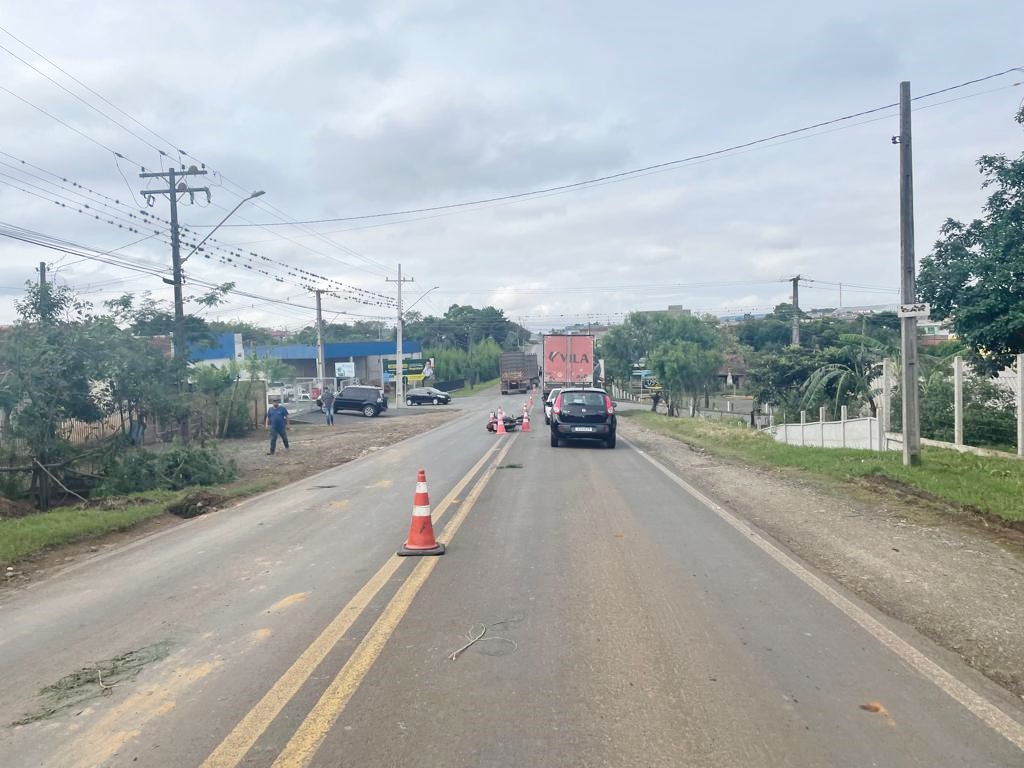 Acidente entre motocicleta e caminhão ocorreu na BR-153, em Irati. Foto: PRF/Divulgação