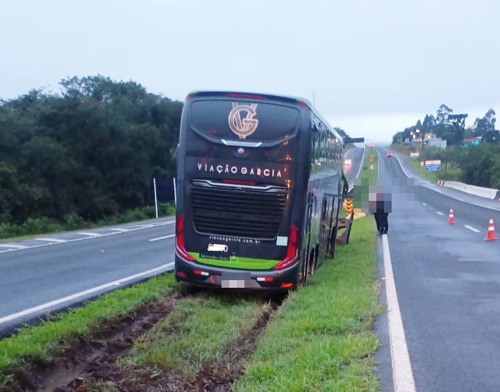 Já na BR-277, no trevo do Relógio, em Prudentópolis, um ônibus da Viação Garcia saiu da pista e ficou em uma área verde na madrugada de hoje, por volta das 2h20. O veículo seguia de Curitiba para Cascavel. De acordo com a PRF, ninguém ficou ferido no acidente. Os passageiros foram remanejados para outro ônibus e seguiram viagem.