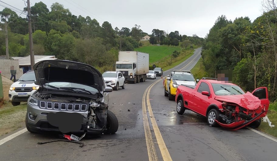 Na PR-151, em Palmeira, uma mulher ficou ferida após uma colisão frontal entre uma caminhonete Jepp Compass e uma Saveiro na manhã de ontem. Conforme a PRE, o motorista do Compass, de 33 anos, foi encaminhado para a Delegacia de Palmeira, pois apresentava sinais de embriaguez.