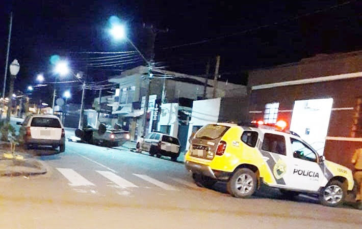Um motorista atingiu uma viatura da Polícia Civil de Rebouças no início da madrugada deste domingo, 21, por volta das 0 h. O acidente ocorreu na rua José Afonso Vieira Lopes, na área central da cidade. Segundo a Polícia Militar, o condutor de uma Parati seguia sentido centro-bairro no momento em que atingiu um Renault Duster, que pertence à Secretaria de Estado da Segurança Pública e Administração Penitenciária. O carro da Polícia Civil estava estacionado em frente ao prédio da Delegacia. A batida derrubou uma placa de sinalização. Com o impacto, a Parati capotou e ficou com as rodas para cima. Os dois ocupantes do veículo deixaram o local. De acordo com informações da PM, a passageira foi identificada em consulta às imagens das câmeras de segurança da Delegacia. A Polícia Militar foi até a residência dela, mas foi informada pela sua mãe que ela não havia retornado para a casa. Moradores que viram o acidente disseram que o motorista reside na localidade de Barreiro, no interior de Rebouças. Dois celulares foram encontrados dentro do veículo. Os policiais de Rebouças acionaram a perícia de Ponta Grossa para realizar os procedimentos cabíveis. A Parati foi recolhida ao pátio do 2º Pelotão da PM.
