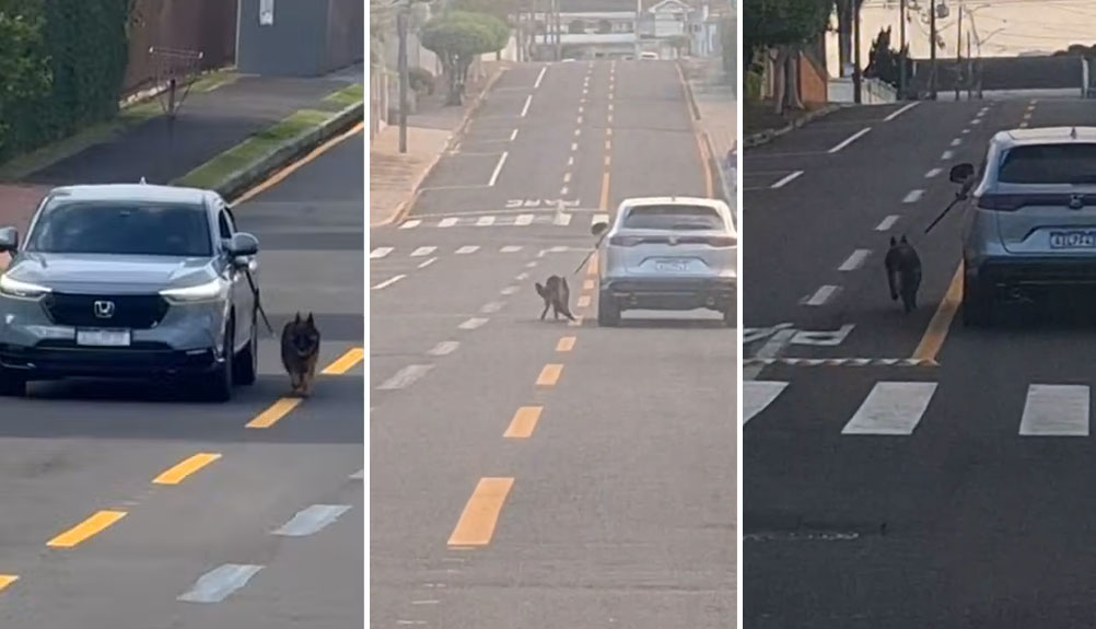 Segundo a polícia, o animal, da raça Pastor Alemão, foi obrigado a acompanhar o carro preso por uma corda, percorrendo uma distância superior a dois quilômetros, apresentando sinais de exaustão. Em alguns momentos, conforme o depoimento de testemunha, o cão chegou a ser arrastado por parte do trajeto.