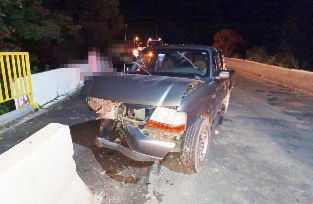 Condutor de caminhonete Ford Ranger perdeu controle da direção e colidiu na mureta de proteção na ponte do Rio Iguaçu