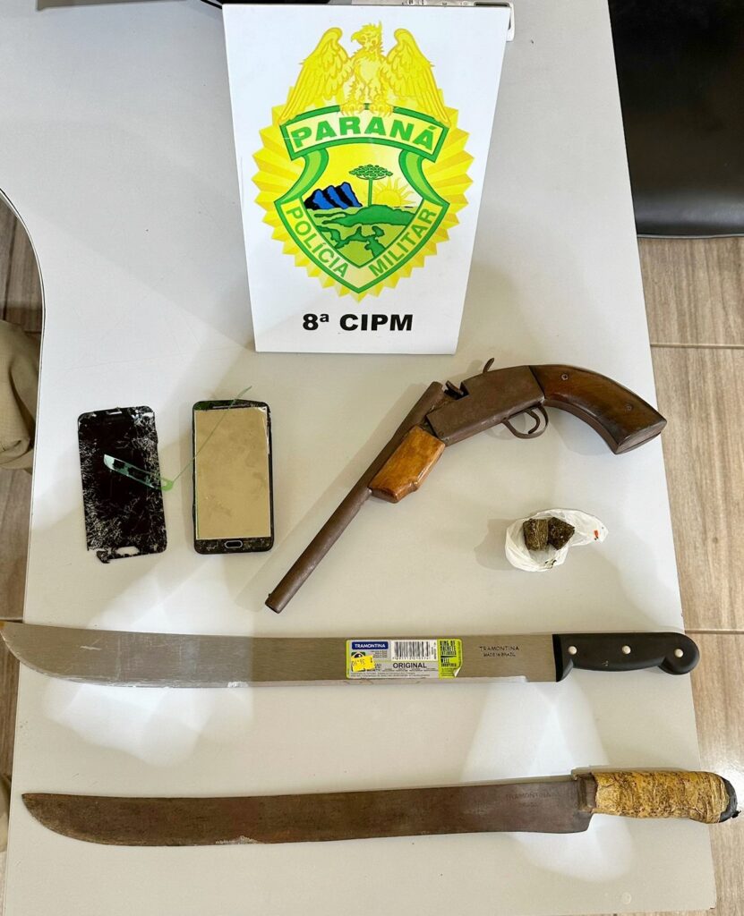 O proprietário dos objetos e drogas foi encontrado na casa de um vizinho. Ele foi detido por posse irregular de arma de fogo. Já os agressores não foram encontrados pelos policiais.