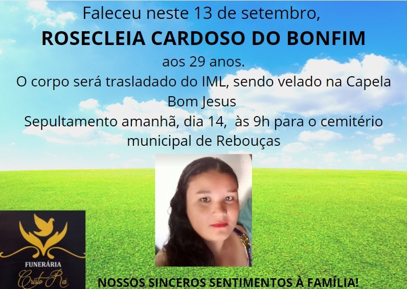 O corpo de Rosecleia será sepultado na manhã desta quarta-feira, 14, no Cemitério Municipal de Rebouças.