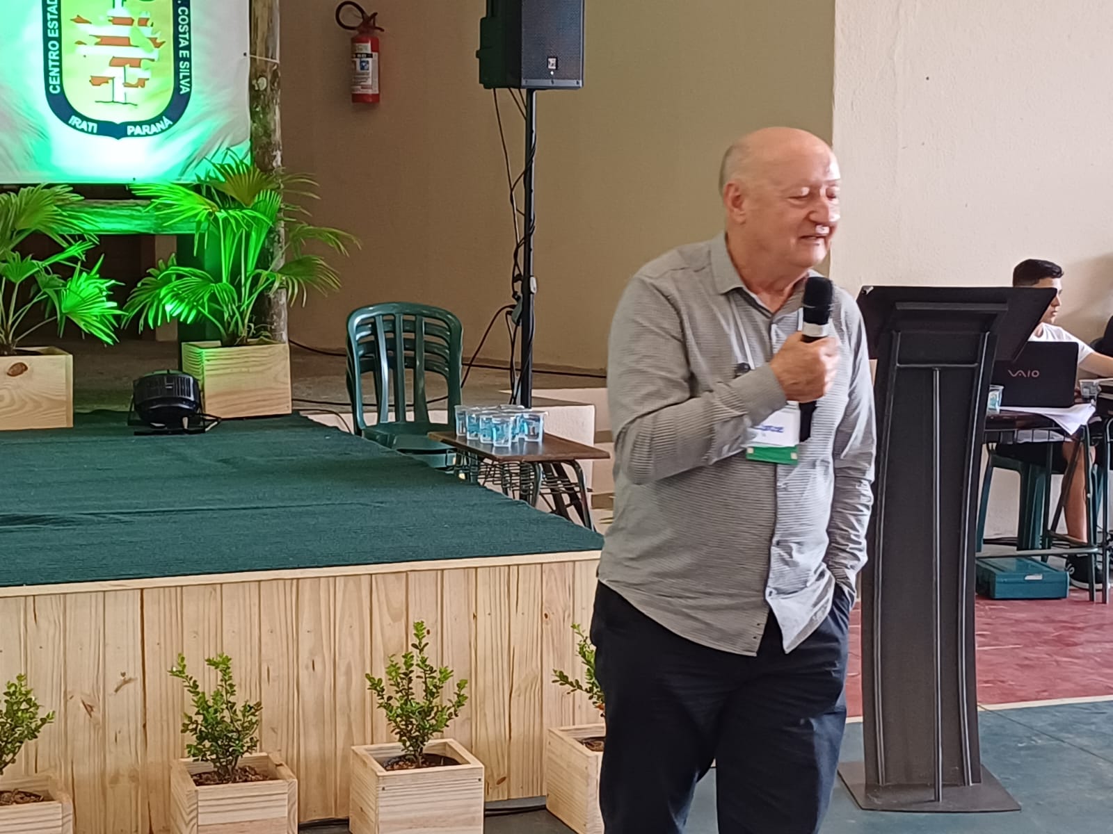 Um dos funcionários do colégio, Oldair Passos, também destacou como é trabalhar e ajudar a construir a história da instituição. “Cada um de nós que estamos aqui hoje deu uma parcela desses 50 anos. A minha parcela é 15 anos aqui dentro do colégio, trabalhando. Nós nos dedicamos. O Colégio Florestal é uma casa muito acolhedora, sempre foi muito prazeroso trabalhar no colégio. O colégio é diferenciado. É uma escola diferenciada de tudo e qualquer outra escola que você conheça aqui de Irati ou fora porque é uma escola fazenda. O colégio é 24 horas porque os alunos moram aqui dentro. Eles permanecem 24 horas aqui dentro. Nós temos atividades no colégio que são atividades de 24 horas. É diferenciado e sempre exige um pouquinho da dedicação maior de nós funcionários, dos professores que trabalham aqui. É uma escola muito diferenciada”, disse.