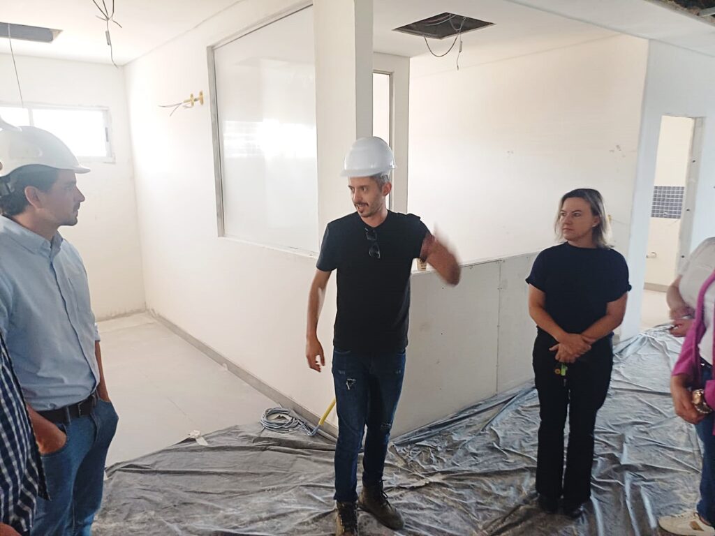 O novo Ambulatório Médico de Especialidades (AME) de Irati deve ser finalizado e entregue até dezembro deste ano. A previsão foi dada pela chefe da 4ª Regional de Saúde de Irati, Cristiana Maria Schvaidak, e pela diretora do Consórcio Intermunicipal de Saúde (CIS/Amcespar), Ângela Maria Cardoso, durante visita dos prefeitos Leandro Jasinski, de Rio Azul, e Emiliano Gomes, de Irati, às obras na última quinta-feira, 04.