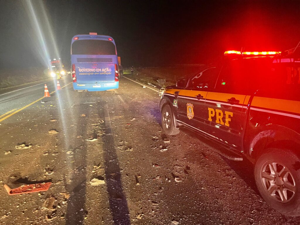 Algumas pessoas ficaram feridas após uma colisão traseira entre um ônibus Volvo e um caminhão na BR-277, em Palmeira, no fim da tarde de sábado.