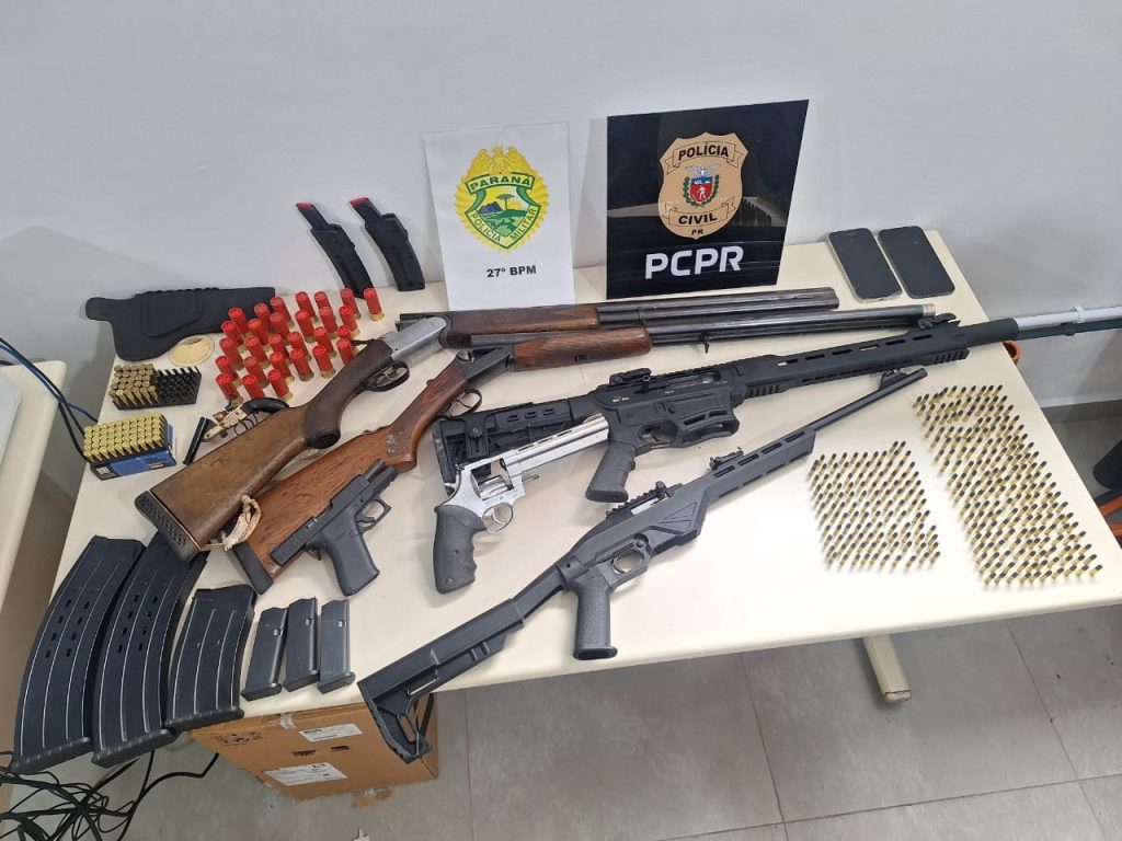Uma ação integrada entre a Polícia Militar e a Polícia Civil resultou na apreensão de diversas armas de fogo, munições e na prisão de duas pessoas na manhã desta segunda-feira (17), em São Mateus do Sul.