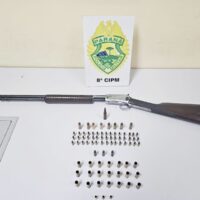 Policiais localizaram uma carabina calibre 22 e várias munições em estufa de fumo onde homem…