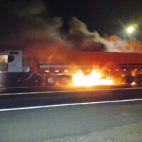 Corpo de Bombeiros controlou o fogo. O motorista não se feriu Uma carreta carregada com…