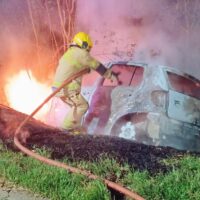 Bombeiros foram acionados e controlaram o incêndio. Veículo foi removido ao pátio do Destacamento da…