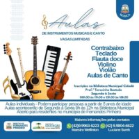 Inscrições estão abertas para aulas de contrabaixo, teclado, flauta doce, violino, violão e canto. Aulas…