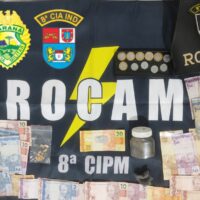 Policiais apreenderam pedras de crack, pote de maconha, uma porção de cocaína e uma quantia…