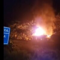 Moradores não estavam no local no momento do incêndio. Bombeiros realizaram o rescaldo da área…