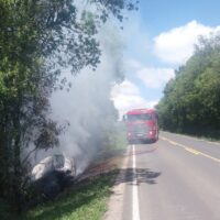 Motorista conseguiu sair a tempo do carro e sofreu ferimentos leves em virtude da batida…
