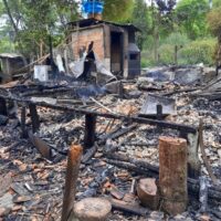 Família tem casa destruída por incêndio enquanto estava na igreja