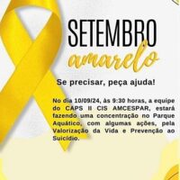 Atividades integram a campanha “Setembro Amarelo” e serão realizadas a partir das 09h30min no Parque…
