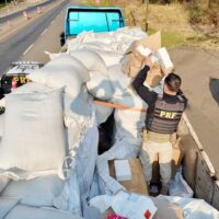 Celulares estavam escondidos entre os sacos de polietileno de um caminhão abordado na rodovia. Condutor…