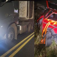 Colisão entre carro e carreta carregada com madeira ocorreu no início da noite de ontem…