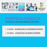 Serão ofertadas 14 vagas no curso de Bacharelado em Agronomia Matutino e 34 de Licenciatura…