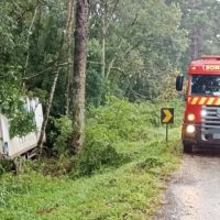 Caminhão saiu da pista e atingiu algumas árvores. Motorista sofreu múltiplas lesões, conforme o Corpo…